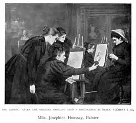 She was a pupil of Tony Robert-Fleury at the Académie Julian.[1] Houssaye exhibited her work at the Palace of Fine Arts and The Woman's Building at the 1893 World's Columbian Exposition in Chicago, Illinois.[2]