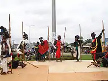 Artistic representation by Joseph-Francis Sumégné of neuf notables Bamiléké