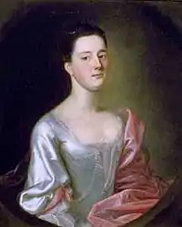 He seems to have been the son of a painter, and to have had a studio in Boston in 1750–1765; among his patrons were many important early American families, including the Apthorps, Amorys, Bulfinches, Lowells, Ewings, Saltonstalls, Winthrops, Winslows and Otises of Boston. Blackburn spent time in Bermuda (1752–1753), Newport (1754), Boston (1755–1758), and Portsmouth (1758–1762). In late 1763 he returned to London and painted portraits in southwestern England, Wales, and Dublin between 1768 and 1777.[2] Approximately one hundred fifty of Blackburn's portraits survive.[2] He excelled at painting textiles (i.e., representing the shimmer of silks, the texture of laces, and the folds of fabrics).[2]