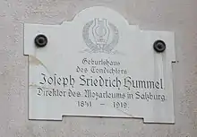 Born in Innsbruck, Hummel studied music at the Hochschule für Musik und Theater München under Franz Lachner and worked as theater kapellmeister in Innsbruck, Aachen, Troppau and Vienna, as well as conductor of the Brünn City Theatre from 1876 to 1879.[1] He became director of the Mozarteum Orchestra and head of the newly established music school International Mozarteum Foundation from 1880 to 1908.[2] There, he played with the orchestra that he founded, the women's choir and led the Salzburger Liedertafel (amateur male choir) from 1882 until 1912, organizing several major choral festivals in Salzburg, and thus gaining the reputation as a fine Mozart conductor.[3] Hummel died in Salzburg in 1919 at the age of 78.