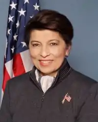 Jovita Carranza (born June 29, 1949) is an American businesswoman who served as the 26th Administrator of the Small Business Administration from 2020 to 2021, having previously served as the 44th Treasurer of the United States from 2017 to 2020. She was appointed to both roles by President Donald Trump. Before that she served as the Deputy Administrator of the Small Business Administration from December 2006 to January 2009.[3][4] Appointed by President George W. Bush, Carranza was unanimously confirmed by the U.S. Senate. Prior to her first appointment to the SBA, Carranza served as Vice President of Air Operations for United Parcel Service (UPS) at its facility in Louisville, Kentucky.[5]