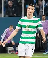 Šimunović re-established himself in the team, and formed a solid partnership in central defence alongside Erik Sviatchenko which saw Celtic go on a run of nine clean sheets.[19][20][21] During this time he also played in Celtic's 30 win over Aberdeen in the 2016 Scottish League Cup Final in November, and played the pass in to Tom Rogic for Celtic's opening goal.[19][22] After the cup final win, he told Croatian newspaper Sportske novosti that, "It was really phenomenal. The atmosphere is normally great in our games, but this time it was extra special, because it was the 100th trophy of the club."[23] In March 2017, Šimunović scored Celtic's first goal in a 21 win away at Dundee, extending the club's lead in the league to 25 points ahead of second-placed Aberdeen as they closed in on their 48th league championship.[24]
