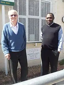 David Pinkess (Fred Pinkess' son), near the foundation stone of the church