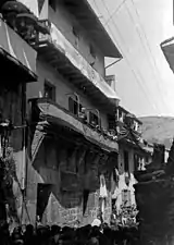 Julián Elorza got married fairly late; in 1922[29] he wed Visitación Urizar, descendant to a well-to-do bourgeoisie[30] Biscay family from Berriz.[31] Her close relative José Urizar was a deputy to the Biscay provincial diputación and her uncle was the archpriest of San Sebastián;[32] the Urizars were known rather for Liberal political preferences.[33] The couple settled in Azpeitia and had two sons, born in the mid-1920s. The older one, Julián Elorza Urizar, died as a 13-year-old boy in 1936; circumstances of his death are not clear. The younger one, José Ignacio Elorza Urizar,[34] was a lawyer and entrepreneur; though during late Francoism and in the late 20th century he held various executive posts in Gipuzkoan commercial entities[35] he did not become a public figure. The brother of Julián, Fructuoso Elorza Aizpuru, was also a lawyer[36] and served as mayor of Azpeitia during the late Restoration period;[37] his son and Julián's nephew volunteered to requeté and died in combat in 1937.[38]