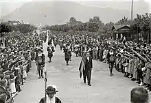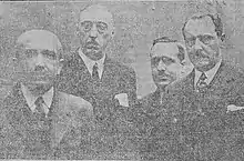 In June 1931 the “SEV Statute” was subject to approval at a grand meeting of vasco-navarrese mayors in Estella.[135] The gathering was co-presided by Elorza and it introduced changes to the "SEV Statute", mostly in line with his earlier objections;[136] in a frenetic closing session Elorza raised the "¡Gora Euzkadi!" cry.[137] Some SEV members claimed that he inspired and manipulated the amendments;[138] others noted that Elorza and other Carlists like Urquijo hijacked the project. He later excused himself, claiming that in Estella he was speaking not as a SEV president but on his own behalf.[139] The “Estella Statute” became soon irrelevant anyway; when presented to the newly elected Cortes[140] it was declared non-constitutional.[141]