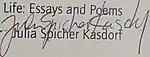 - 1 2 3 'Julia Spicher Kasdorf', Penn State: The Department of English (2005) Archived 2006-09-01 at the Wayback Machine. Retrieved August 30, 2006.