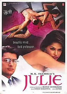 Julie is an Indian Hindi erotic film produced by N. R. Pachisia and directed by Deepak Shivdasani. The film stars Neha Dhupia, Priyanshu Chatterjee, Yash Tonk, Sanjay Kapoor and Achint Kaur. It is available on Rajshri Channel of YouTube.[1] and on the Disney+hotstar app.