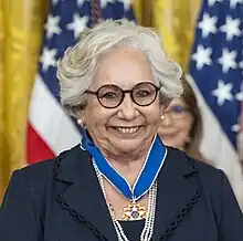 García has served on the boards of trustees for the Ford Foundation and the Robert Wood Johnson Foundation.[9] García was inducted into the Texas Women's Hall of Fame in 2000.[10] She was a 2007 recipient of the Distinguished Alumnus Award from the University of Texas at Austin.[11] She was named one of the ten top college presidents by Time in 2009.[12] In 2014, she was named to Fortune magazine's World's 50 Greatest Leaders.[13] She was the commencement speaker and an honorary degree recipient at Smith College in 2015.[14] In 2022, García was announced as one of seventeen recipients of the Presidential Medal of Freedom.[15]