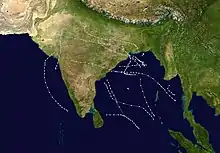 The years between 1940 and 1949 featured the 1940s North Indian Ocean cyclone seasons. Each season was an ongoing event in the annual cycle of tropical cyclone formation. The North Indian tropical cyclone season has no bounds, but they tend to form between April and December, peaks in May and November. These dates conventionally delimit the period of each year when most tropical cyclones form in the northern Indian Ocean. Below are the most significant cyclones in the time period. Because much of the North Indian coastline is near sea level and prone to flooding, these cyclones can easily kill many with storm surge and flooding. These cyclones are among the deadliest on earth in terms of numbers killed. On 27 April 1949, India Meteorological Department (IMD) became a member of the World Meteorological Organization after independence.[1]