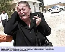 During the visit, she told the reporters that she had been jailed and tortured in the facility, and that her husband had been killed in a nearby prison.[2] The Washington Post story was later mentioned by Paul Wolfowitz while testifying before the United States Senate Committee on Foreign Relations.[3] Hanna was resettled to northern California by US authorities to protect her from possible reprisals.[2]