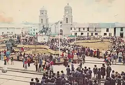 Junín is a city in Central Peru, capital of the Junín Province in the Department of Junín. It is located on the southern shore of Lake Junín, at an elevation of 4,107 m (13,474 ft). It was founded as Town of Kings in 1539 and elevated to city level by the Law No. 9834, on October 27, 1943, during the presidency of Manuel Prado Ugarteche.