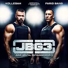 Jung Brutal Gutaussehend 3 ("Young, violent, handsome 3"; also stylized as Jung, brutal, gutaussehend 3 and abbreviated as JBG 3) is the third collaborative studio album by German rappers Kollegah and Farid Bang. It was released on 1 December 2017 through Alpha Music Empire, Banger Musik, and BMG. Before the release of the album, Kollegah and Bang collaborated on Jung, brutal, gutaussehend in 2009 and Jung, brutal, gutaussehend 2 in 2013.