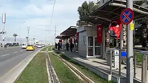 Köprü is a station on the Konak Tram line in İzmir, Turkey. It is located along the Mustafa Kemal Coastal Boulevard in west Konak.[1] The station consists of two side platforms, one on each side of the boulevard.