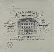 The ground floor of the building was adapted for use as a proper retail space with large display windows in 1952.[1] Carl Bagger's perfumery was at some point replaced by Hugo Vilsoët Material- Drogueri- Parfume- og Farvehandel, a combined pharmacy, perfumery and dye shop.
