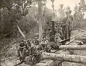 Logging played only a secondary role in the area, but mines needed Kauri timber both for construction and for heating the ore ovens. Local loggers thus operated a narrow gauge logging railway including a small steam engine.[3]