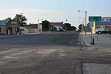 In a February 25, 1959 meeting, it was approved to extend K-23 south into Oklahoma.[54] On December 11, 1959, the Kansas and Oklahoma highway commissions held a joint meeting in Wichita. At that meeting, the Kansas Highway Commission resolved to connect K-23 with SH-23 to establish a "route number common to both states".[55]:12 By February 6, 1961, the roadway had been brought up to state highway standards and in a March 8, 1961 resolution, K-23 was realigned to follow the former K-98 to Meade State Lake then south over a previously unnumbered roadway to the Oklahoma border.[54] On August 31, 1961, bids were accepted for a project to improve this new 8.9-mile (14.3 km) section of K-23, including the building of two new bridges.[56] In June 1961, it was announced that K-23 would be upgraded in the city of Dighton, including widening in certain areas and repaving.[57] Before 1990, K-23 continued directly west to US-83 at its northern terminus. Then in a March 12, 1990 resolution, US-83 was realigned and at that time K-23 was realigned to curve north then intersect US-83 northeast of Selden.[58]