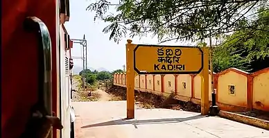 Kadiri railway station (Station code: KRY) is a station in Anantapur district, Andhra Pradesh, India, serving Kadiri city. It lies on the Dharmavaram–Pakala branch line and comes under the jurisdiction of Guntakal railway division of the South Central Railway zone. The railway line was constructed in 1891 along with the Railway Station and electrified in 2020.[1] The Platforms are well sheltered when compared with other stations in same Railway line. It is the major railway station in the railway line.[2][3]