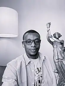 Kakwenza Rukirabashaija (born 1 October 1988) is a Ugandan novelist and lawyer.[2] He is the author of The Greedy Barbarian[3] and Banana Republic: Where Writing is Treasonous.[4] He was named winner of the English PEN 2021 Pinter International Writer of Courage Award.[5][6][7][8][9][10][11]