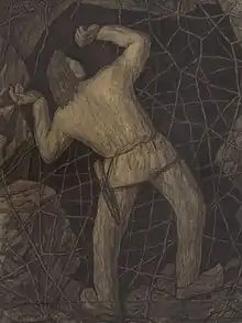Kalevipoeg Destroying Webs on His Way to Hell ca. 1935. Kristjan Raud.