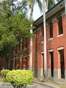 In Taiwan under Japanese rule period, Japanese built "Red Buildings" with red bricks still being used today, six classroom buildings, a military building, a Gymnasium, a swimming pool and an auditorium, while most of the above also built with red bricks. After World War II, these buildings were still being used as teaching. Some parts of the structures started presenting old as time went by, thus the principal Jīa-Jì, Wáng started rebuilding or alternating some buildings, for example the 3@th, 4@th, 5@th, 6@th and 7@th teaching buildings, and also the dormitory for faculties, the musical building, the technical building, the art building and the activity center. After Huì-Mín, Xióng succeeded the principal, the Hóng-Yì building, the technical building and the physics building were erected. The dormitory for faculties built in March 1982 and located on the south west of the school once belonged to Kaohsiung Municipal Kaohsiung Industrial High School, was later transferred to Kaohsiung Municipal Kaohsiung Senior High School.