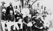 King William Fernandez of Bramiah (front, second from right) with the future governor Jean-Marie Bayol in 1885