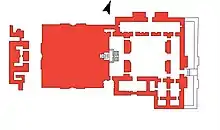 North of the temple stood the royal palace. The palace was placed on a platform, originally about 18m high. All remains of the palace building on the platform are lost, although many wall paintings were found. They show that the palace was richly decorated. Next to the palace a second, badly preserved palace building was found. Perhaps this was the entrance for a bigger palace complex, incorporating both palaces.