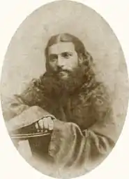 Polievktos Karbelashvili (1855–1936) was born in Kvemo Chala and was educated at the seminaries in Gori and Tbilisi.[5] He was active in the restoration of autocephaly to the Georgian Orthodox Church, and worked to preserve Georgian language, culture, and chant.[1] During his career he was active as a writer, publishing many books and articles on a variety of subjects from Georgian history and culture. With his brother Vasil he notated and collected traditional chant; he also produced religious texts and edited works by Georgian writers.[5] He was especially well-known for his library of historical materials, and he worked to preserve documents from the churches and monasteries of Svaneti;[6] his work also included the collection of traditional Georgian surnames and their origins.[7] Many of the documents which he transcribed are no longer extant, making his copies the only record of their contents in existence.[8] Karbelashvili was well-acquainted with many of the intellectuals of his time, cultivating relationships with Ilia Chavchavadze, Akaki Tsereteli, Niko Nikoladze, and many others. He was buried in Gurjaani at his death in 1936.[6]