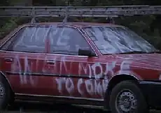 The graffito left upon one of the Chan family's two vehicles, likely as a subterfuge to deflect her abductor's true intentions for abducting Karmein