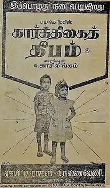 - ↑ "1965 – கார்த்திகை தீபம் – (எ) எம்.கே.மூவிஸ்" [1965 – Karthigai Deepam – (A) M. K. Movies]. Lakshman Sruthi (in Tamil). Archived from the original on 7 July 2022. Retrieved 1 October 2020.
