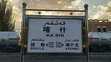 Kashgar railway station (喀什站) is the main railway station of Kashgar, Xinjiang and the westernmost railway station in China. It is the western terminus for the Southern Xinjiang and Kashgar–Hotan Railways.