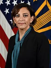Arrington joined the U.S. Department of Defense in 2019 as a "highly qualified expert" and later competed for and joined the nonpartisan Senior Executive Service. She served as the chief information security officer for acquisition for the Office of the Under Secretary of Defense for Acquisition and Sustainment.[5] The Department placed her on leave and suspended her security clearance in 2021 due to allegations of unauthorized disclosure of classified information from a military intelligence agency and misuse of office.[16][17][18]