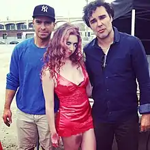John Byrne, Katie Johnson, and David LaChapelle on set during the filming of "The Exorsocks", 2013
