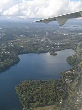The municipalities of Tampere and Kangasala adjoin the lake. Kaukajärvi was the venue for the 1977 World Rowing Junior Championships and the 1995 World Rowing Championships.[2]