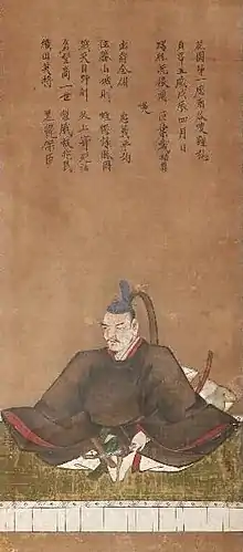 Kawajiri Hidetaka (河尻 秀隆, 1527 - July 7, 1582) was a Japanese samurai warrior during the Sengoku period, he was served Oda Nobuhide and was one of the vassals of Oda Nobunaga. He was the first samurai in the "Kuro-horo-shu" (bodyguard unit in black) elite troops selected from Nobunaga's aides, and later served as an assistant to Oda Nobutada, Nobunaga's eldest son. He was also the lord of Mino Iwamura, and later became the lord of Kai province. There are few documents related to Hidetaka and Kawajiri clan, and many of his traces are recorded in Shinchō Kōki, Koyo Gunkan, and records related to Tokugawa clan.