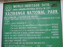 - ↑ Kaziranga Factsheet (Revised) Archived 18 July 2008 at the Wayback Machine, UNESCO, Retrieved on 2007-02-27