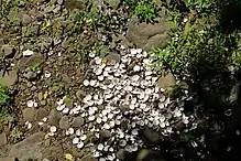 The streambed of Keeler Creek, including many clam shells