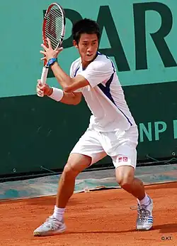 Kei Nishikori (錦織 圭, Nishikori Kei, [ɲiɕi̥koꜜɾi keꜜː]; born 29 December 1989) is a Japanese professional tennis player. He is the second male Japanese player to have been ranked in the top 5 in singles (after Jiro Sato), and the only one to do so in the Open Era. Nishikori first reached his career-high singles ranking of world No. 4 in March 2015. Nishikori has won 6 ATP Tour 500 titles, 6 ATP Tour 250 titles and was runner-up at the 2014 US Open,[4] making him the first man representing an Asian country to reach a major singles final.[lower-roman 1] He also became the first man from Asia to qualify for the ATP Finals, and reached the semifinals in 2014 and 2016.[5] In addition, Nishikori defeated Rafael Nadal to win the bronze medal at the 2016 Summer Olympics, bringing Japan its first Olympic tennis medal in 96 years.[6] He holds the record for the highest win percentage in matches extending to five sets, with a record of 27–7 and a win percentage of 79.4%.[7]