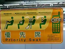 Keiō was among the first railway companies to introduce priority seats on its trains. Priority seats are those reserved for the physically handicapped, elderly, pregnant women, and people with infants. These special seats, which were initially called "Silver seats" but renamed in 1993, were inaugurated on Respect for the Aged Day on September 15, 1973.
