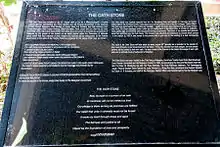 The continuous delaying for relocation as well with the high cost reason for restoration from the federal government have been criticised by Sabahan politicians and perceived by them as the federal government not having an intention to keep its promise.[14][15] However, despite the persistent delays, Minister in the Prime Minister's Department, Joseph Kurup, pledged that the stone would be restored and relocated with the missing words of 'Kerajaan Malaysia Jamin'.[16] Around RM1.025 million have been allocated by the federal government for the relocation to a site near the Keningau Heritage Museum.[17] Malaysian Tourism and Culture Minister Mohamed Nazri Abdul Aziz said the relocation would enable more people and tourists to come and appreciate the history behind the Oath Stone and it would be gazetted under the State Cultural Heritage Enactment (Preservation 1997) after the relocation.[18]