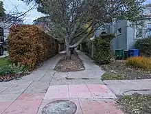 Until 1948, streetcar line #7 of the Key System ran to Kensington from Berkeley along Arlington Avenue, terminating in the small commercial area at Amherst Avenue. The streetcar was then replaced by an AC Transit bus route of the same number, which continues to run along Arlington Avenue. The streetcar service played an important role in the development of Kensington, and was fed by a network of mid-block pedestrian paths, most of which persist to this day. The pathways, which traverse Kensington, were offered for dedication for public use to the County of Contra Costa at the time the various subdivision maps were recorded. The County never accepted the offer of dedication, and accordingly, the ownership of the pathways has been in a state of uncertainty. Some of the pathways are used by the public regularly, and some have fallen into disuse, are overgrown with foliage, or have been absorbed into neighboring properties.