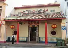 One of the most sightworthy buildings is Cundhi Gong Temple (準提宫) at No. 13 Keong Saik Road, which was built in 1928 in the Nanyang style.[7] The temple, which is dedicated to the Guan Yin, Bodhisattva of Compassion, is a two storey building without a forecourt and has an area of 400 square metres.[8]