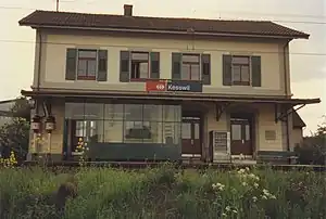Kesswil railway station (German: Bahnhof Kesswil) is a railway station in Kesswil, in the Swiss canton of Thurgau. It is an intermediate stop on the Lake line and is served as a request stop by local trains only.