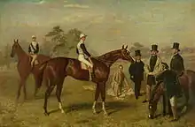 Kettledrum’s sire, Rataplan, was a top-class racehorse who won forty-two races including the Doncaster Cup and the Cambridgeshire Handicap. He was a successful stallion but was even more successful as a sire of broodmares, being the damsire of the Derby winners Cremorne and Kisber.[4] Kettledrum’s dam, Hybla, was an excellent broodmare who had already produced the 1854 Epsom Oaks winner Mincemeat.