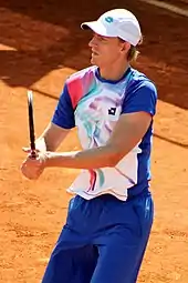 Kevin Michael Anderson (born 18 May 1986) is a South African professional tennis player. He achieved his career-high Association of Tennis Professionals (ATP) ranking of world No. 5 on 16 July 2018.[2] He was the first South African to be ranked in the top 5 since Kevin Curren was No. 5 on 23 September 1985.On 6 February 2011, Anderson defeated Somdev Devvarman in his hometown of Johannesburg to capture the South African Open title for his first ATP Tour-level title. His second ATP title came at the 2012 Delray Beach Open when he defeated Marinko Matosevic. Anderson won his third championship in 2015 at the Winston-Salem Open with a victory over Pierre-Hugues Herbert. He ended 2017 winning the exhibition World Tennis Championship. His fourth title came in February 2018 at the New York Open. Anderson reached his maiden Grand Slam final at the 2017 US Open, where he lost to Rafael Nadal.[3] In the 2018 Wimbledon semifinals, Anderson reached his second major final by defeating American John Isner in the second-longest match in the history of major tournaments. The match, which lasted 6 hours and 36 minutes, was only beaten in length by the 2010 match between Isner and France's Nicolas Mahut. He then lost to Novak Djokovic in the final in straight sets. On 3 May 2022, Anderson retired at age 35[4] but he announced his comeback in July 2023.