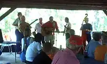 Every Labor Day the Tennessee Valley Coon Hunter's Association sponsors a gathering at the cemetery in a tribute to the inauguration of the cemetery on Labor Day in 1937. The celebration includes bluegrass music, dancing, barbecue and a liar's contest.[35] Admission is free to the public, but donations are accepted and help defray upkeep expenses. In 2014 eight Redbone Coonhound puppies were sold at the gathering, with proceeds going to upkeep. The gathering is often attended by local politicians.[27][36][37]