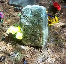 Headstones and markers in the cemetery range from homemade metal and wooden monuments to more intricate marble engraved stones, akin to human gravesites.[17] They range from humble and home made to relatively well-crafted and ostentatious. Each reveals a touching story and makes a tribute.[20] Some have epitaphs, such as "He wasn't the best, but he was the best I ever owned". The interred dogs include many notable hunting dogs such as Hunter's Famous Amos, Ralston Purina's 1984 Dog of the Year.[13] It is the only cemetery in the world specifically dedicated to coonhounds.[9][21] By 2014, over 300 dogs were buried in the cemetery.[11]