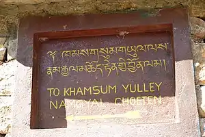 Sign way to Khamsum Yulley Namgyal Choeten.