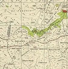 Ein Tanur ("Oven Spring") is a spring north east of the village site, enhanced by an ancient tunnel dug deeply to catch the water at the source and increase its flow.[4] The name was in the 19th century Ain Bint Nûh, or the spring of Noah’s daughter.[5][6]