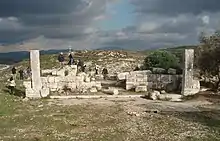 The site was first surveyed by the Palestine Exploration Fund in the late 19th century, and was then mistakenly identified as a church.[1] In excavations conducted by Israeli archeologist Yitzhak Magen in 1991–1992, the structure on the eastern edge of the site was identified as a Samaritan synagogue.[2][3] In addition, a mikveh,[4] a cistern, an arched gate, burial caves and public structures were found at the site.