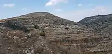 Both in 1863 and in 1870 Guérin visited, and described several ruins.[7] Khirbet Tibnah is described in 1882 as a tell overlooking a deep valley (Wady Reiya) on the north and the ancient Roman road to the south. A cemetery was situated on a flat hill nearby, and to the northwest, the spring of Ein Tibnah emerged from a rocky channel. On the southwest was an oak tree some 30 or 40 feet high, and two wells, one of them dry. West of the tree were traces of ruins believed to be those of an Arab village.[8]